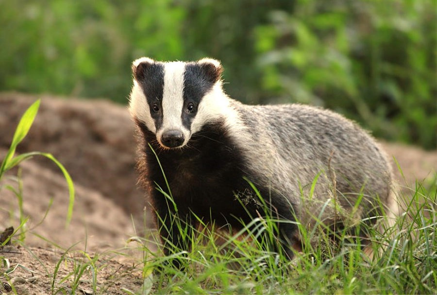 Обитатель лесных нор с характерной чёрно-белой мордочкой.