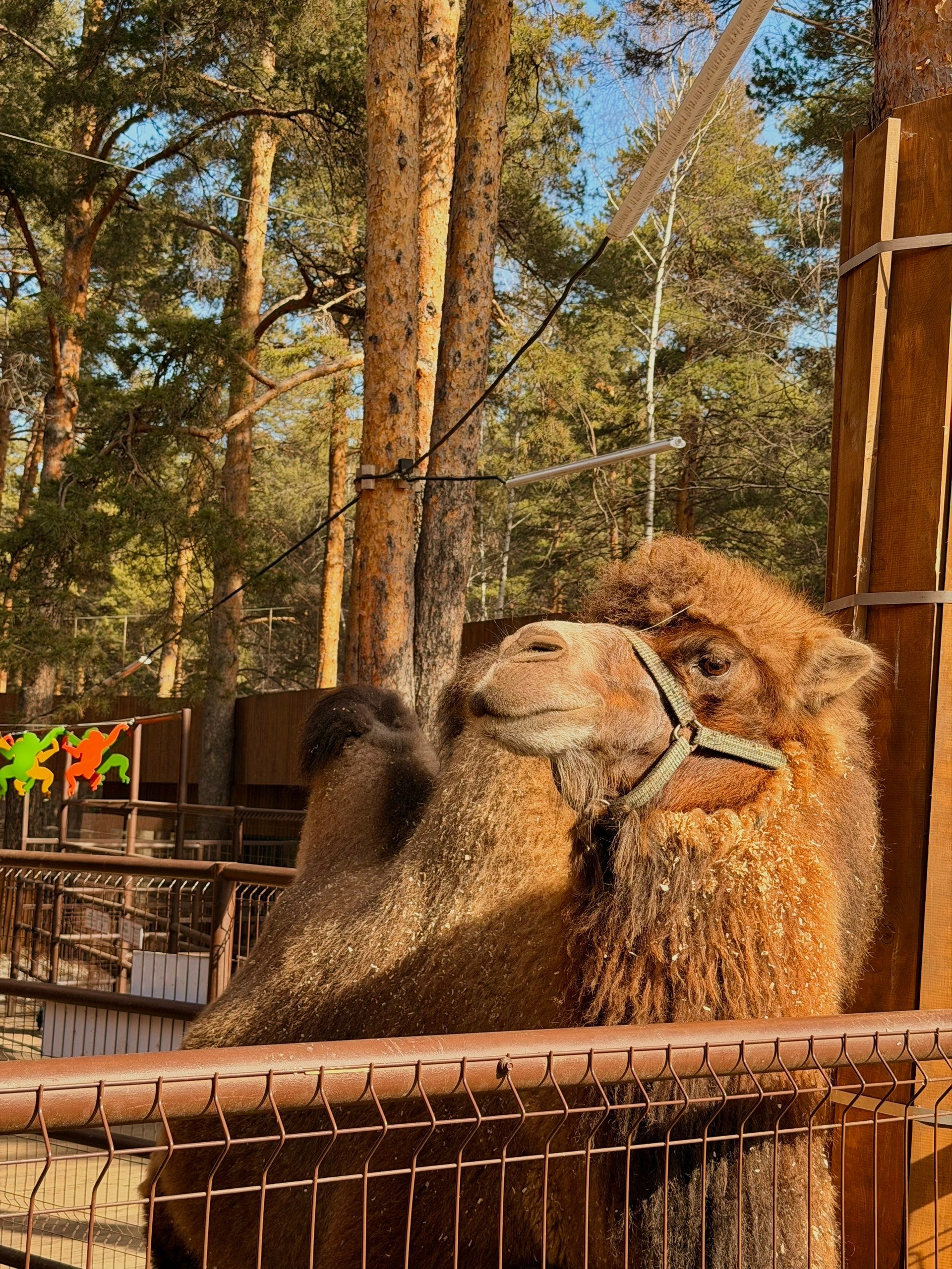 Пони со спортивным прошлым: в молодости прыгал на соревнованиях, а теперь наслаждается заслуженным отдыхом. Главный попрошайка зоопарка — научился бить копытом по стенке вольера, чтобы привлечь внимание и выманить морковку.