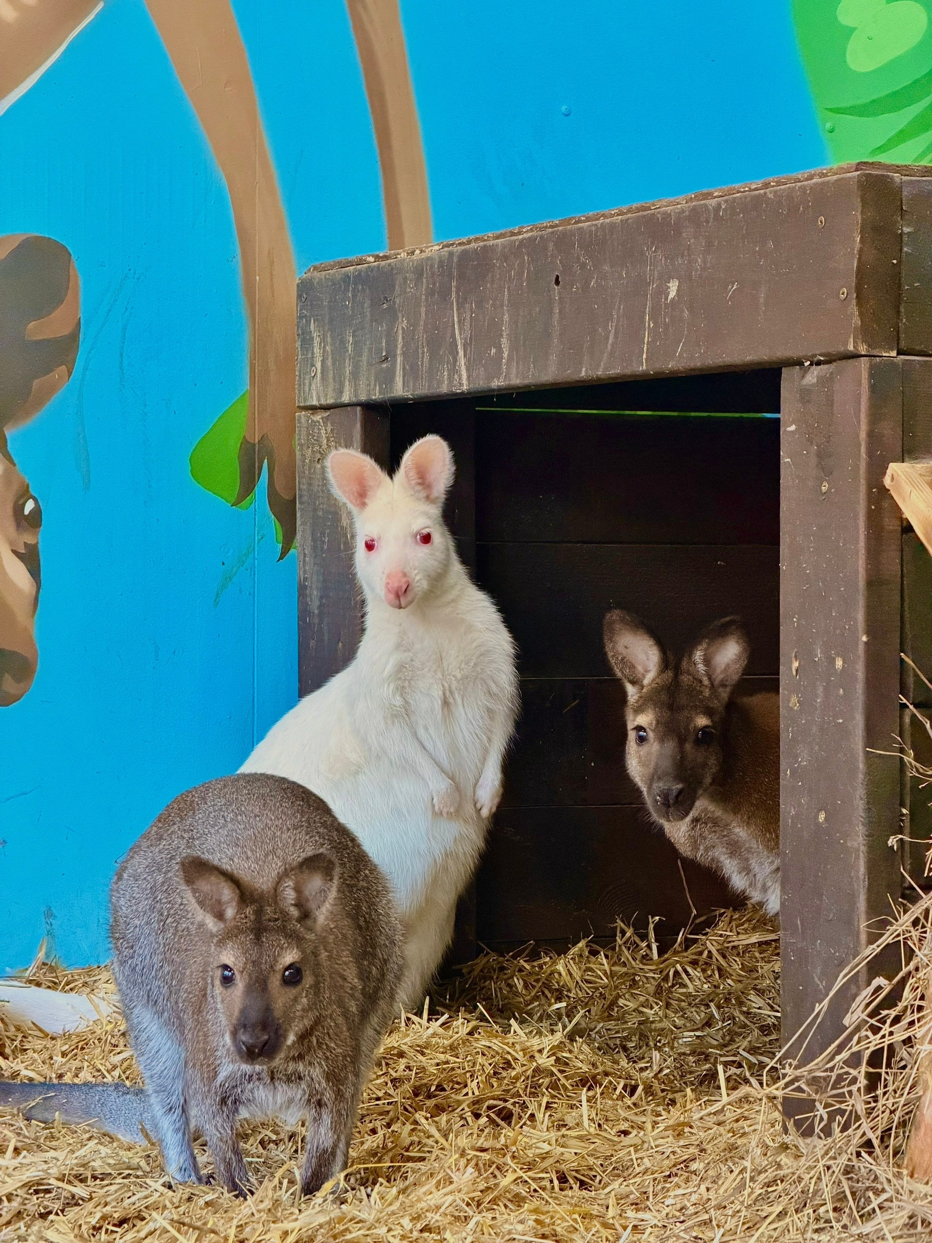 Изольда Удивительная валлаби-альбинос, самая любопытная. Любит запрыгивать на домик и ломать кормушку.