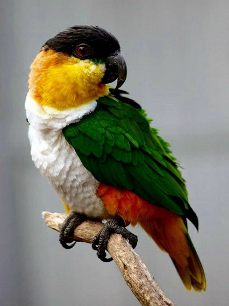 Настоящий клоун! Прыгает как мячик, ложится на спину, «сёрфит» по полу и обожает валяться в руках. Один из самых игривых и энергичных попугаев на планете